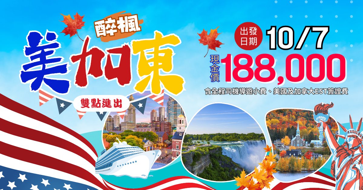 【 10/7~10/19】楓紅美加東雙點13日賞楓遊