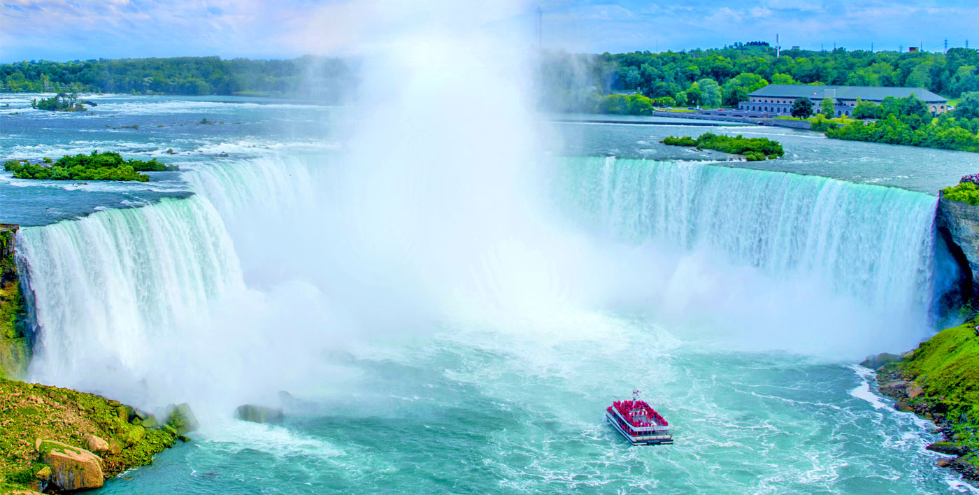 特別安排搭乘【尼加拉瀑布遊船(霍恩布洛爾)】,在以二百英呎落差造成了世界奇景的尼加拉瀑布,面對澎拜的 河水以雷霆萬鈞之勢傾瀉而下,水柱奔騰的雄偉景色,令人嘆為觀止。