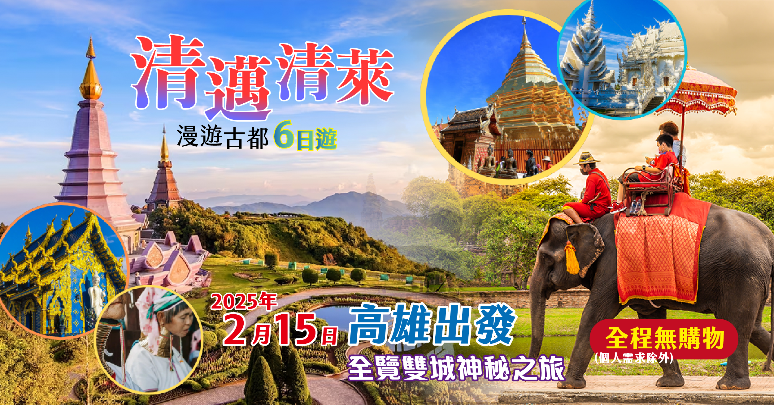清萊【皇太后行宮+御花園→金三角坐船遊湄公河(含上寮國島)→鴉片之家】