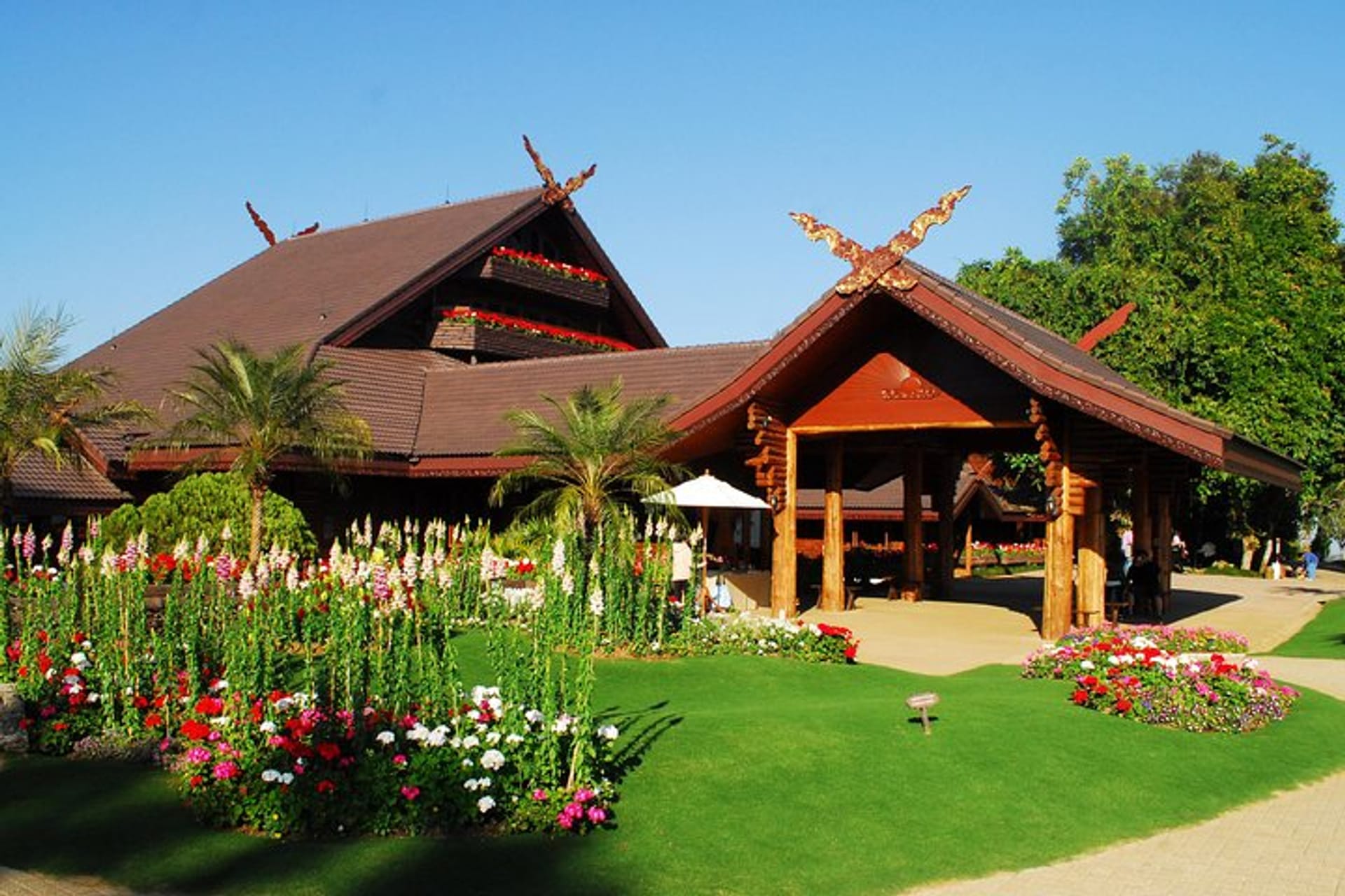 花園旁有皇太后的行宮,有開放給旅客觀賞,它是以泰北的典型 建築設計與瑞士的西式建築藍圖合併所建築而成,行宮係以柚木製成,為兩層樓建築物,內裝都是皇太后御用的設備,精緻華麗,但不奢侈浪費,充份顯示出皇太后平易近人的風格。